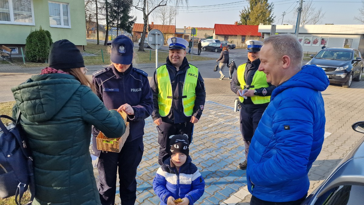 Policjanci reagują na wszelkie wykroczenia popełniane przez uczestników ruchu, sprawdzają trzeźwość kierowców oraz rozdają dorosłym ulotki profilaktyczne, zaś najmłodszych nagradzają elementami odblaskowymi za wzorową postawę.